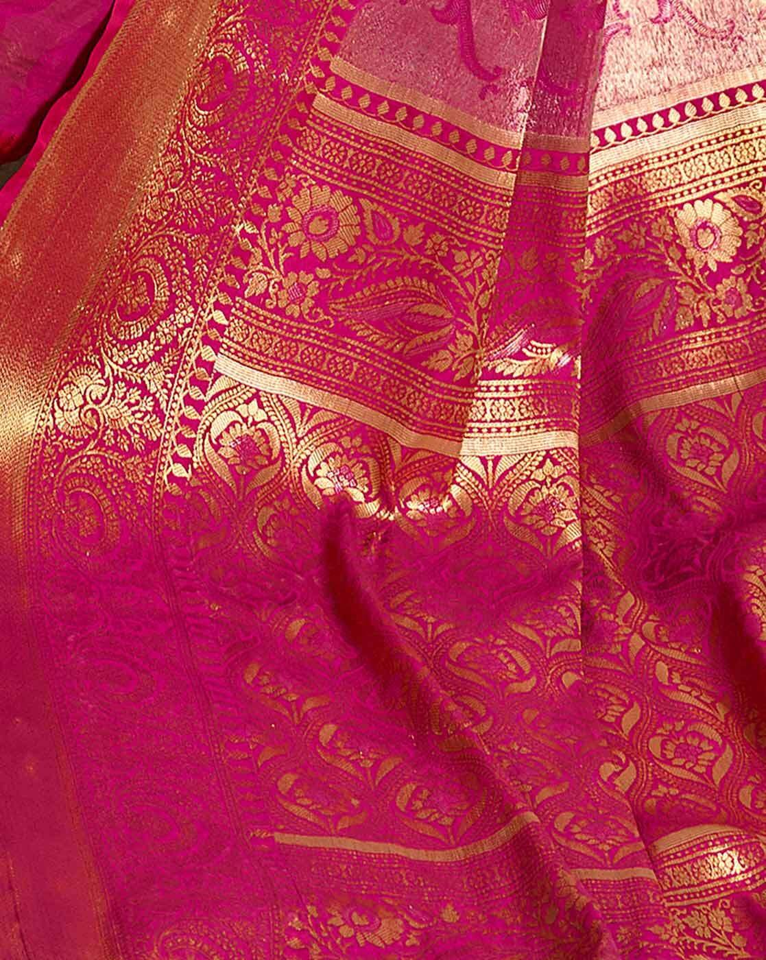 - The last image gives a detailed look of the blouse piece that comes with this saree (The model is wearing a blouse from our in-house wardrobe)